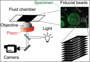 This innovation employs stable, elongated fiducial markers placed within or on the sample, combined with rapid image processing algorithms that detect and correct Z-axis drift without requiring mechanical adjustments or active illumination. FREVR is microscope-agnostic, minimally invasive, and capable of operating in parallel with normal image acquisition, making it suitable for both live-cell imaging and high-resolution microscopy.